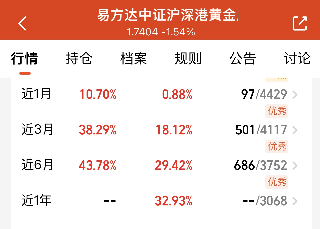 黄金行情又有起色,今天黄金股也跟着动了。很多人不知道,其实黄金股往往是金价的“放大器”——金价涨1%,黄金股可能能涨两三倍的幅度。随着美联储进入降息周期、美元走弱,黄金价格稳步上行,矿企利润弹性更足。易方达黄金股 正是布局这一逻辑的好选择,顺着金价上涨趋势,行情或才刚刚开始。