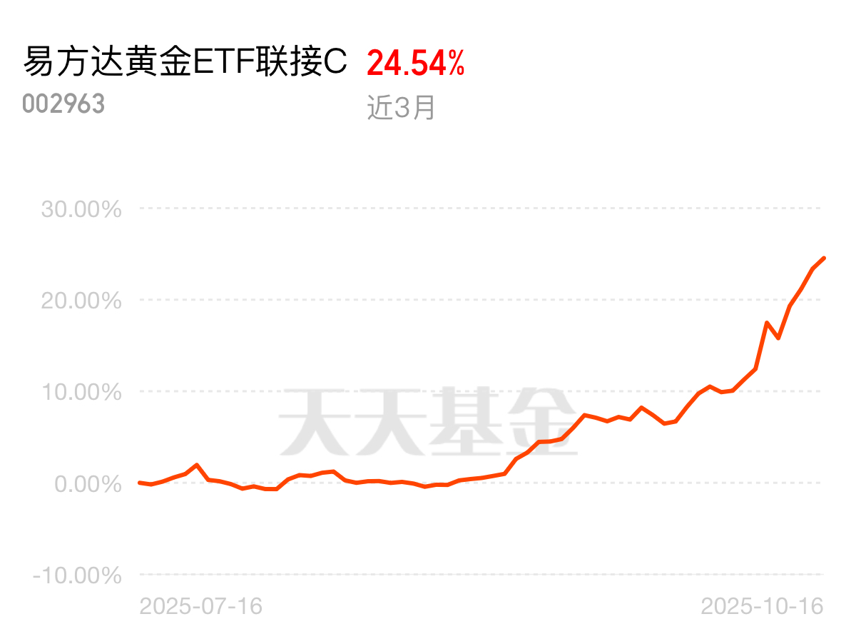 金价创今年最大涨幅,牛市挡不住!易方达黄金ETF联接C今天涨3个点,近一月15.