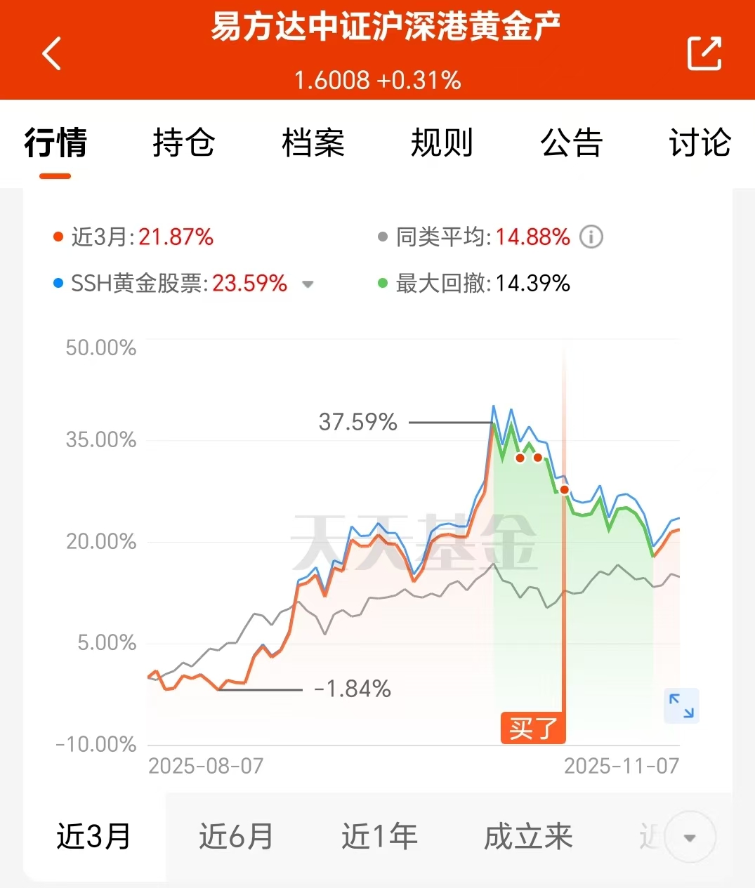 我今天也小加一下$易方达中证沪深港黄金产业股票指数发起式C(OTCFUND|021363)$,它重点布局黄金相关资产的,也符合这波避险行情。年末市场波动大,把它放进持仓里,既能蹭上金价上涨的机会,还能对冲市场波动风险,心里能安心点。