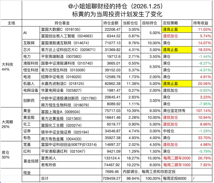 #晒实盘# #AI助手Clawdbot爆火!AI应用迎布局机会?# #金价盘中突破5100美元大关!机构猛吹# #2026年 你最看好哪些投资赛道?# #暖阳创作计划# $德邦稳盈增长灵活配置混合C$ $永赢信息产业智选混合发起C$ $华夏中证沪深港黄金产业股票ETF发起式联接C$ $永赢中证沪深港黄金产业股票ETF发起联接C$ $永赢高端装备智选混合发起C$