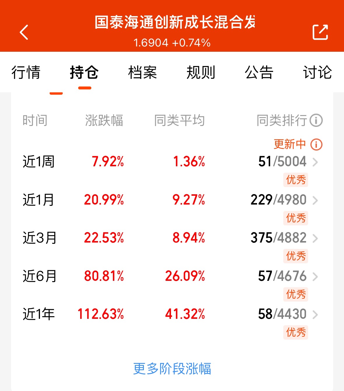 近1周+7.92%、近1月+20.99%、近1年+112.63%!国泰海通创新用