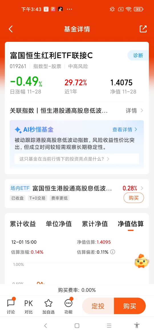手里还入手易方达恒生红利低波,但当前一个月没动静,就多配了点富国恒生红利C近1个