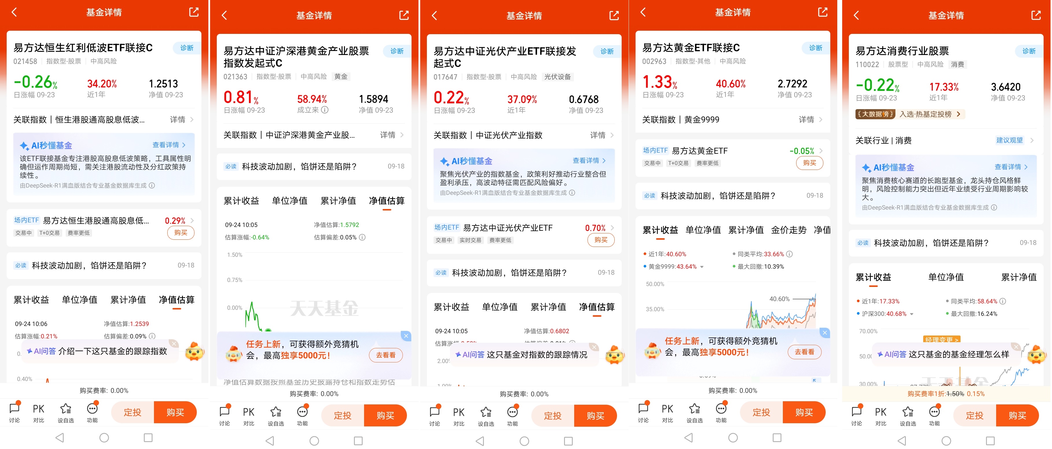 换基就得选易方达的“定心丸”:消费110022由萧楠管近6月波动才0.83%,柴米油盐的刚需稳;光伏017647伍臣东打理,国家支持装机目标高费率还低;红利021458成曦管,股息6%-8%,躺着拿分红。