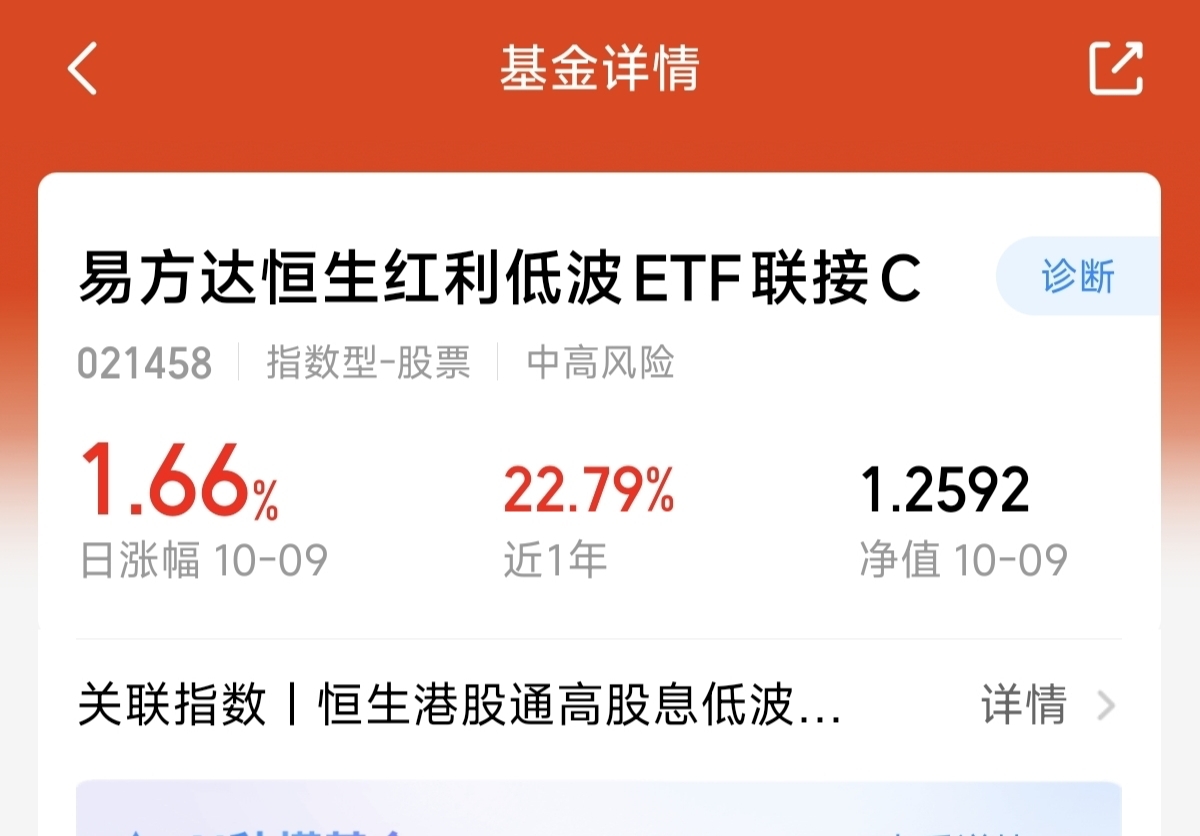 三大指数今天出现集体回调,红利再次成为了资金避险的方向。在牛市上涨的节奏中,防守资产的配置还是不能少,科技主线配置之余,保持一定仓位的红利,而且随着美联储降息背景下,港股整体更有机会,港股红利较A股红利弹性长期的表现也是更好。我开始布局。$易方达恒生红利低波ETF联接C$ 这是聚焦港股红利的指数基金。紧密跟踪人生港股通高股息低波指数。昨天又上涨了1.66%。再次跑赢了恒生科技指数的涨幅。长期表现都是涨多跌少。看好四季度红利再突破。