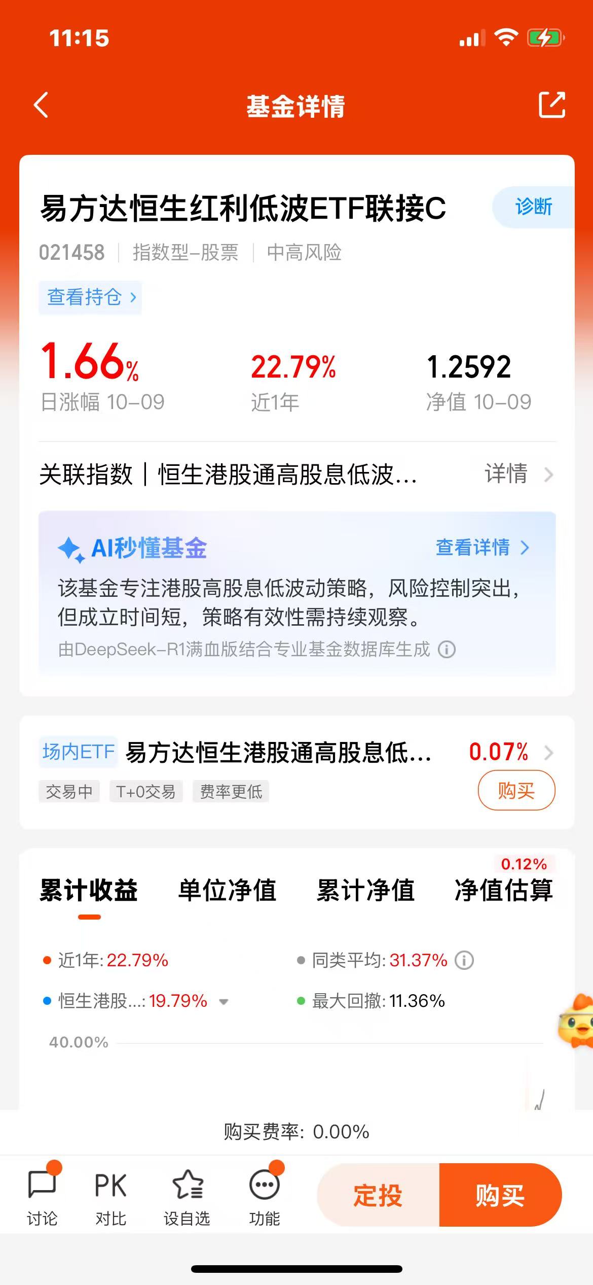港股整体更有机会,港股红利较A股红利弹性更大。接下来重点关注$易方达恒生红利低波ETF联接C(OTCFUND|021458)$