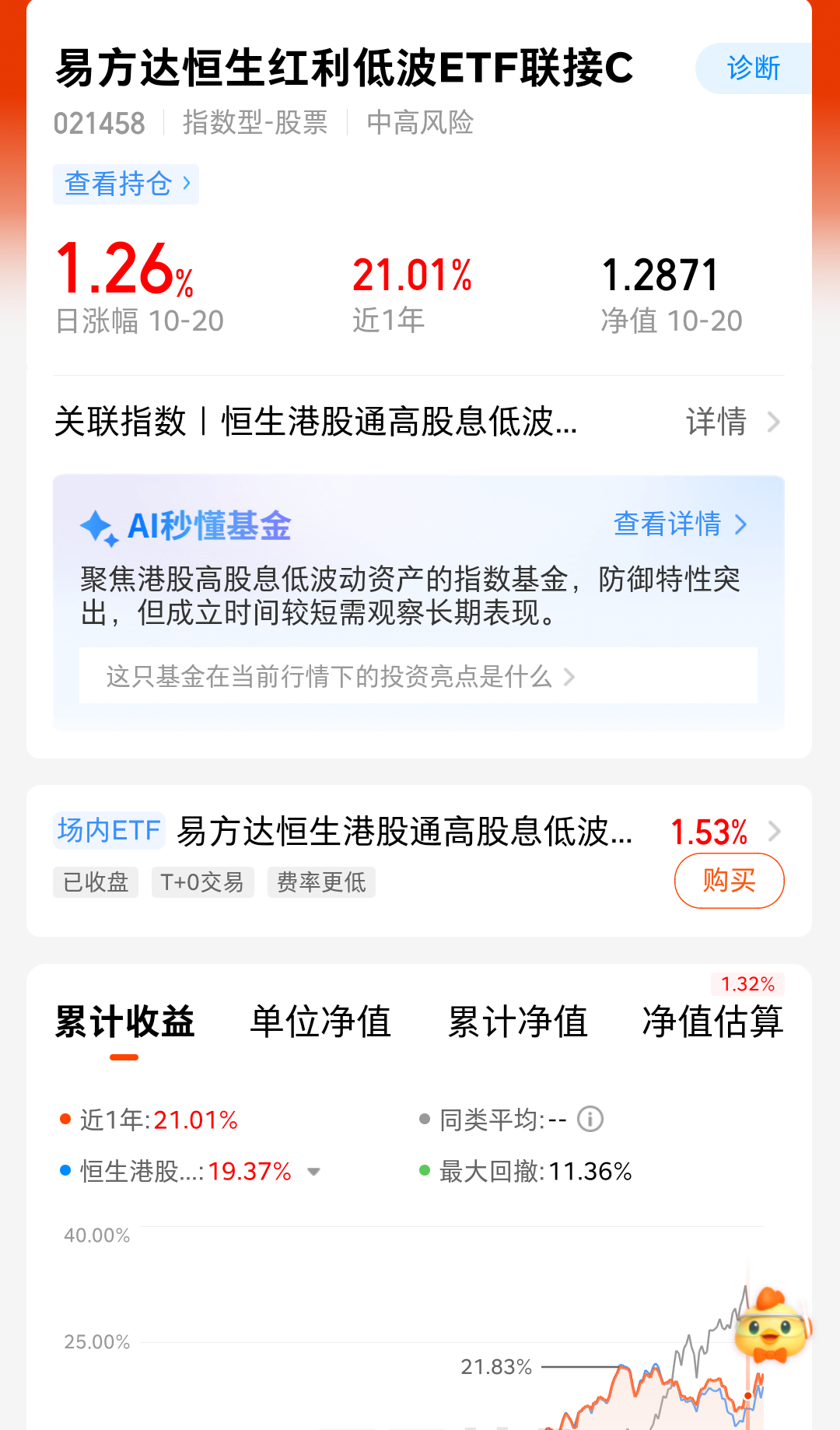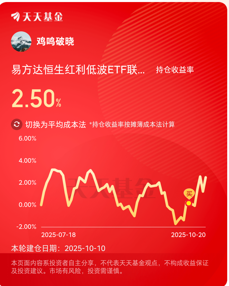 今天股市行情反弹,但是交易持续缩量,风格切换,看来配置防御性资产很有必要呢,我就是配置的$易方达恒生红利低波ETF联接C(OTCFUND|021458)$,收益已经到了2.5% ,在美联储降息背景下,港股整体更有机会,港股红利较A股红利更加有弹性,配置一定仓位的红利,心中才能不慌啊。