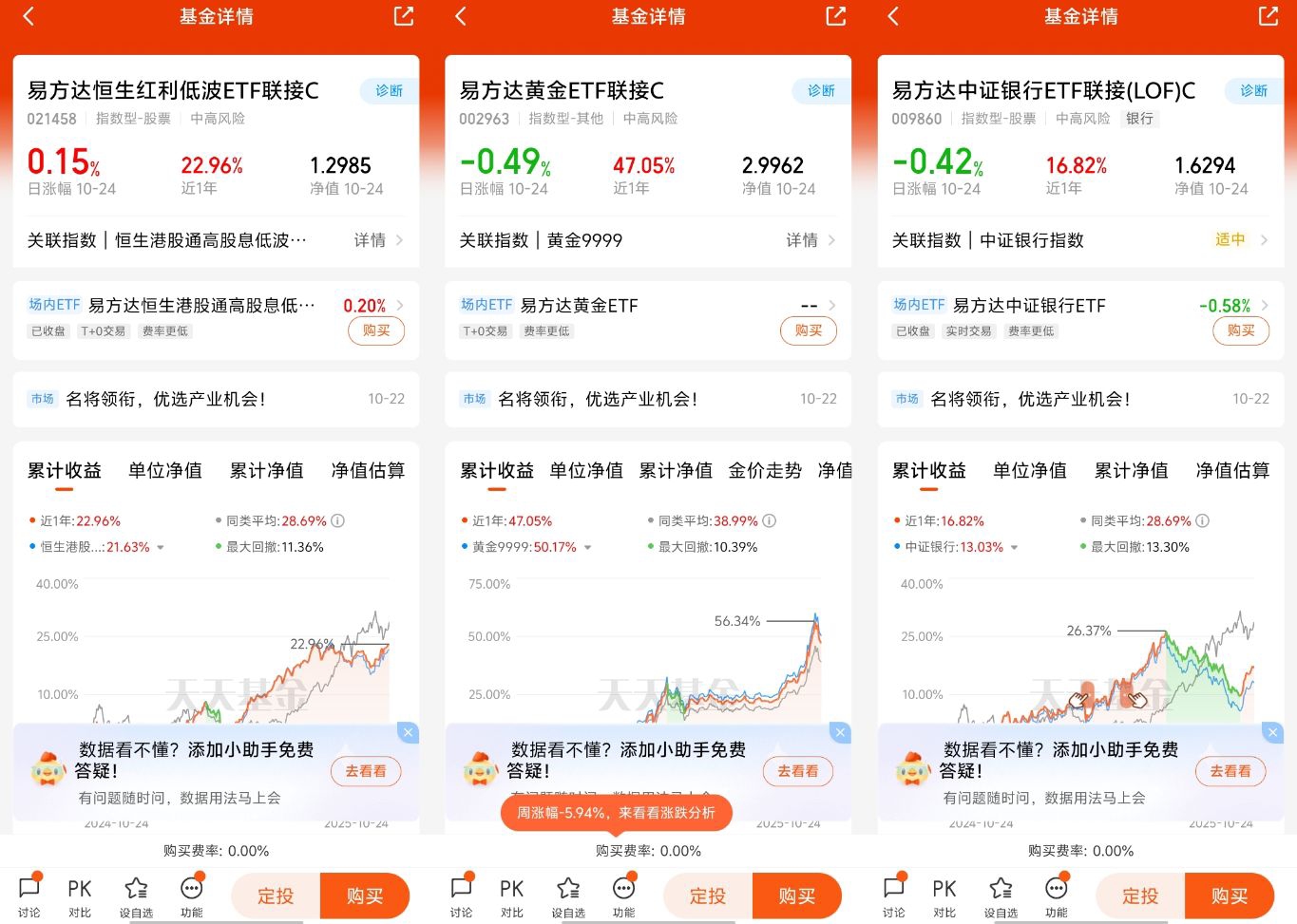 联接基金特性:作为 ETF 联接基金,易方达恒生红利低波 ETF 联接 C 紧密跟踪目标 ETF,能较好地复制目标指数的表现。而且 ETF 联接基金可以通过场外渠道申购赎回,操作更为便捷,适合广大普通投资者。