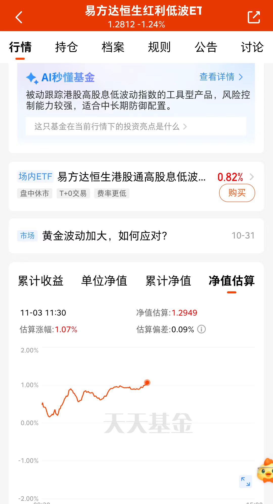 今天股市行情震荡,红利赛道稳健性凸显,$易方达恒生红利低波ETF联接C(OTCFUND|021458)$盘中估值上涨1.07%,前期科技领涨板块接连出现回调,市场有分歧,为应对可能出现的风格切换,提前布局一部分红利资产,平衡持仓,胜率更高。
