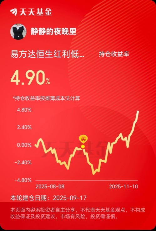 今日市场行情震荡调整,科技板块波动加剧,大资金更倾向于确定性高的红利资产,即可在当下低利率的环境下,提供持续稳定的股息收益,又可作为震荡时期的稳定器!而且港股红利与A股红利相比,估值更低、涨幅弹性更好,所以补涨空间更强,特别是:易方达恒生红利低波ETF联接A不但业绩表现亮眼,同时综合费率还低,比较适合长期持有!