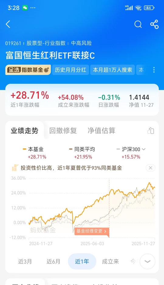 手里易方达恒生红利低波近期一个月没怎么动,倒是富国恒生红利C近1个月涨了1%,近