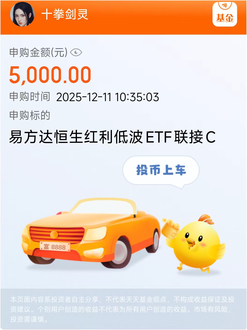 今天又加仓了5000元的$易方达恒生红利低波ETF联接C(OTCFUND|021458)$,跟踪的是恒生港股通高股息低波动指数。这些资金都是一点点从别的基金里挪出来的,包括赎回的一些标普500指数基金。话说,现在标普500指数都限购了,所以赎回 $博时标普500ETF联接C(OTCFUND|006075)$ 的时候还是很心痛的!从我的公开实盘组合"十拳剑之中波实验“中都能看到这些交易记录,公开透明。这篇文章的上方也有实盘组合的链接,能直接打开(需要天天基金app)。