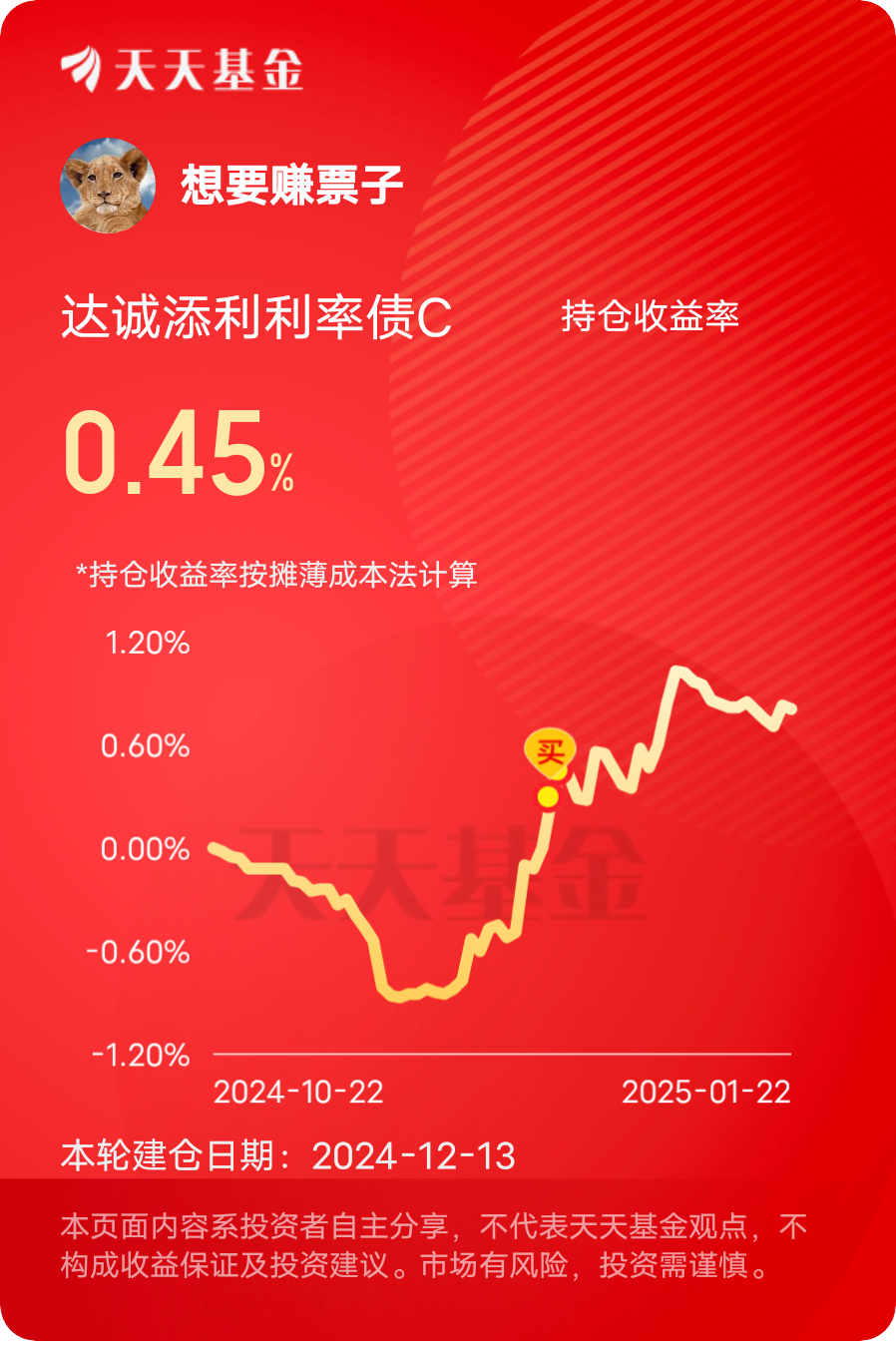 距离春节没有几个交易日了,拿稳债基筹码等待市场上涨获取收益喽!#春节持基还是持币?# #晒收益#