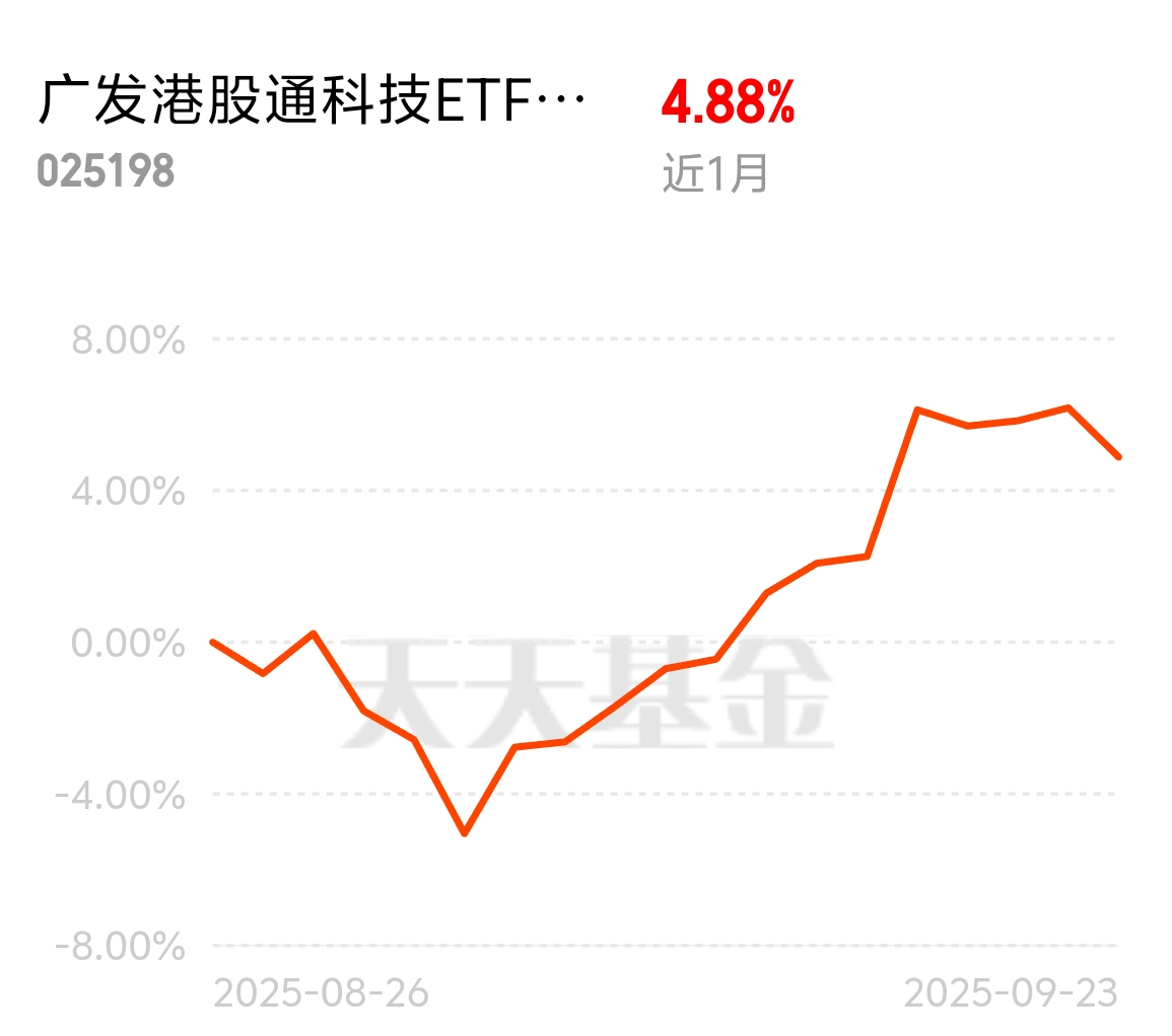 我买的$广发港股通科技ETF联接C$跟踪的港股科技,爆发力真没话说,这波港股科技
