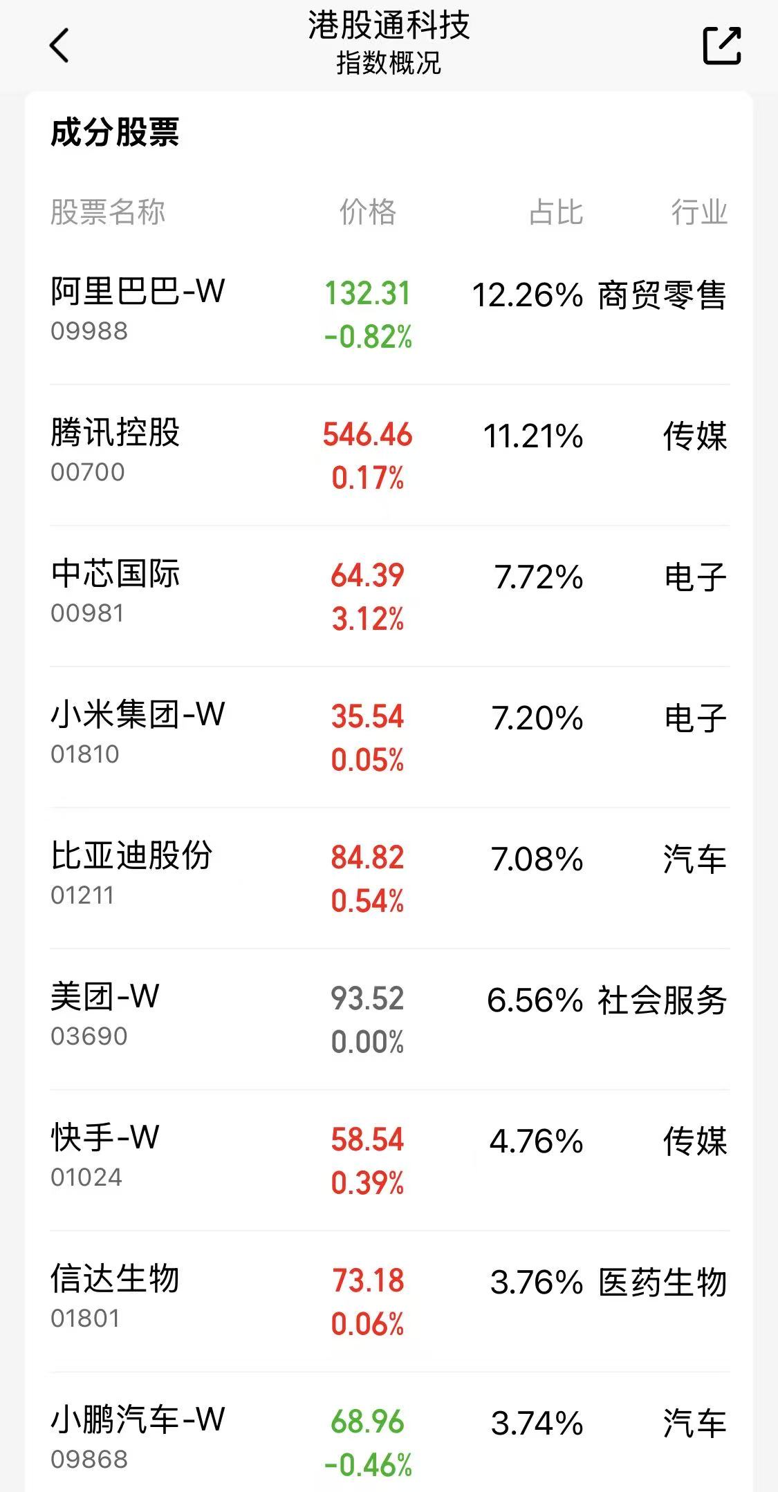3、标的极具稀缺性:中证沪港深科技龙头(931524)的权重股,包括大家耳熟能详、潜力巨大的阿里巴巴-W、腾讯控股、中芯国际、小米集团-W、比亚迪股份、美团-W、快手-W、信达生物、小鹏汽车-W、药明生物等全球最知名、竞争实力最强、技术最先进的国内互联网、医药“顶流”,目前都是只在港股上市,国内的投资者要想分享它们的高收益也只能到港股市场中来。