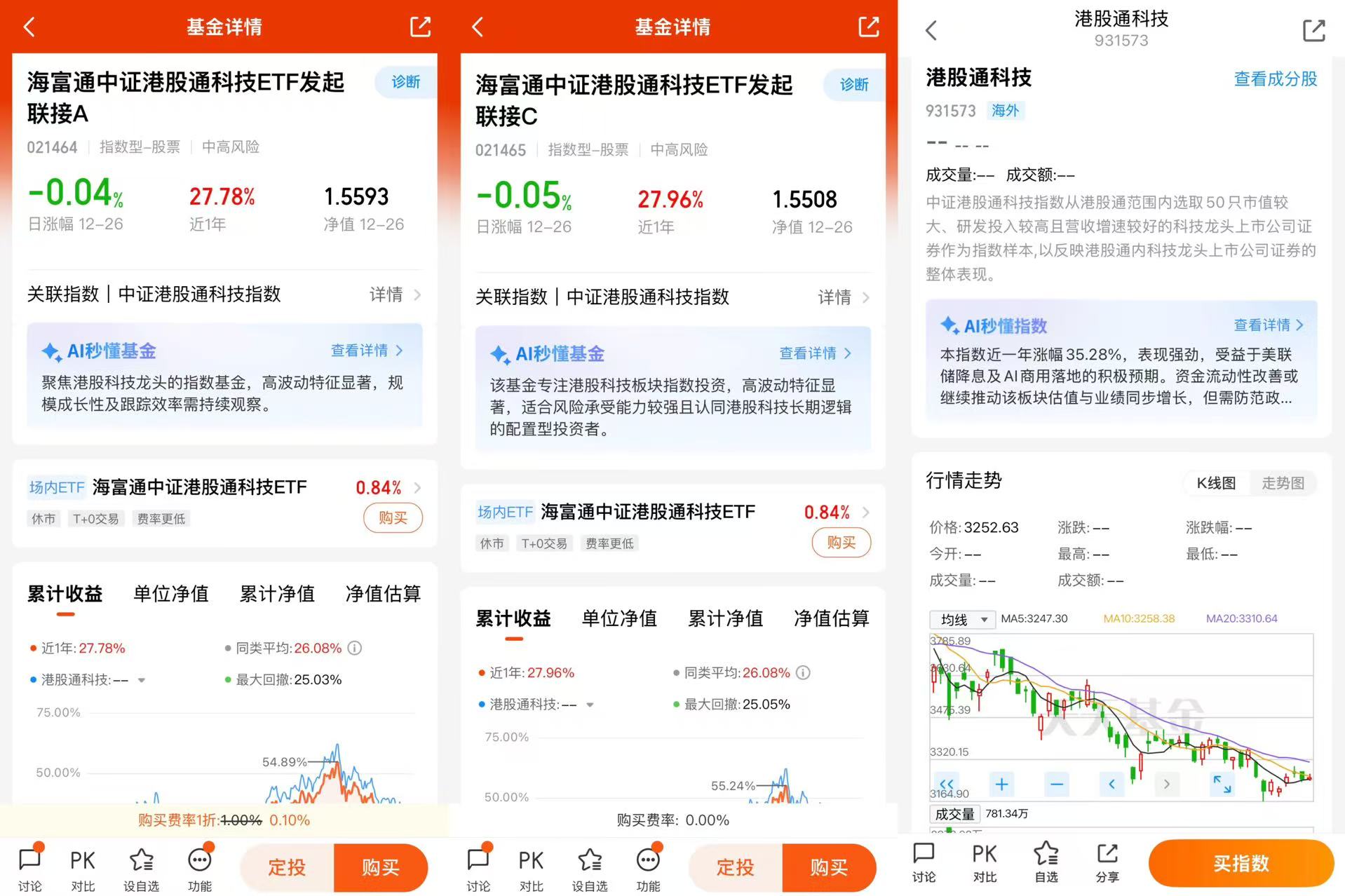 $海富通中证港股通科技ETF发起联接A$ $海富通中证港股通科技ETF发起联接C$