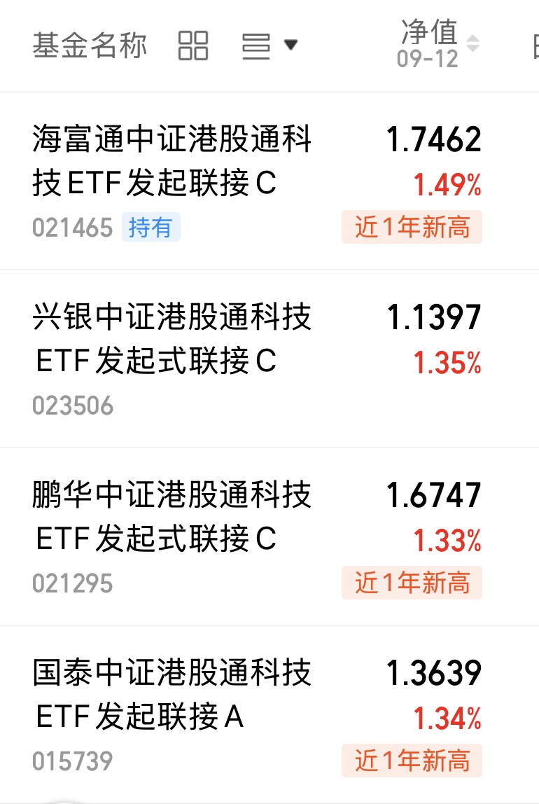 $海富通中证港股通科技ETF发起联接C(OTCFUND|021465)$今天上涨1.49%