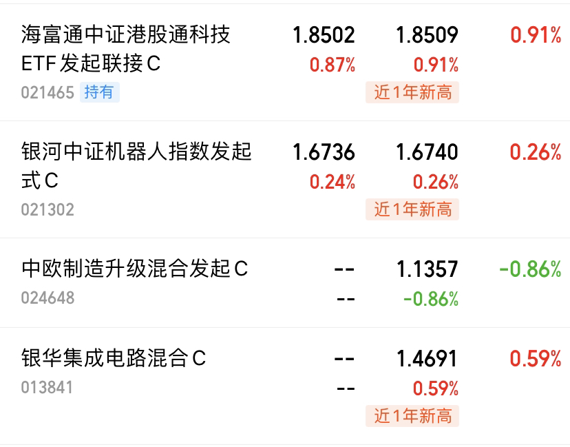指数走的有点太时间了,覆盖整个全天市场的走势,宁德时代把整个指数抬高了,科技类继续有所表现,港股那边也是再接再厉,$海富通中证港股通科技ETF发起联接C(OTCFUND|021465)$上涨0.91%!