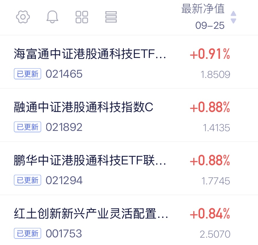 $融通中证港股通科技指数C(OTCFUND|021892)$今天上涨0.88%