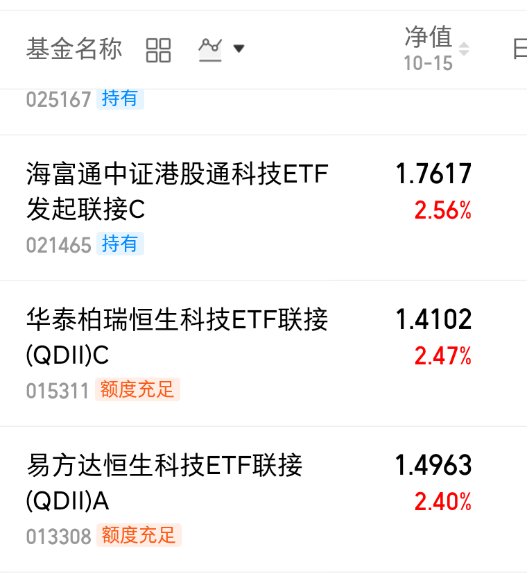 $海富通中证港股通科技ETF发起联接C(OTCFUND|021465)$今天上涨2.56%,比恒生科技涨的还高呢。