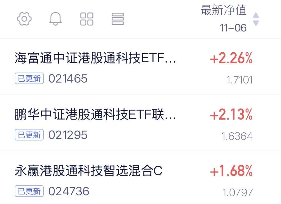 $海富通中证港股通科技ETF发起联接C(OTCFUND|021465)$今天上涨2.26%