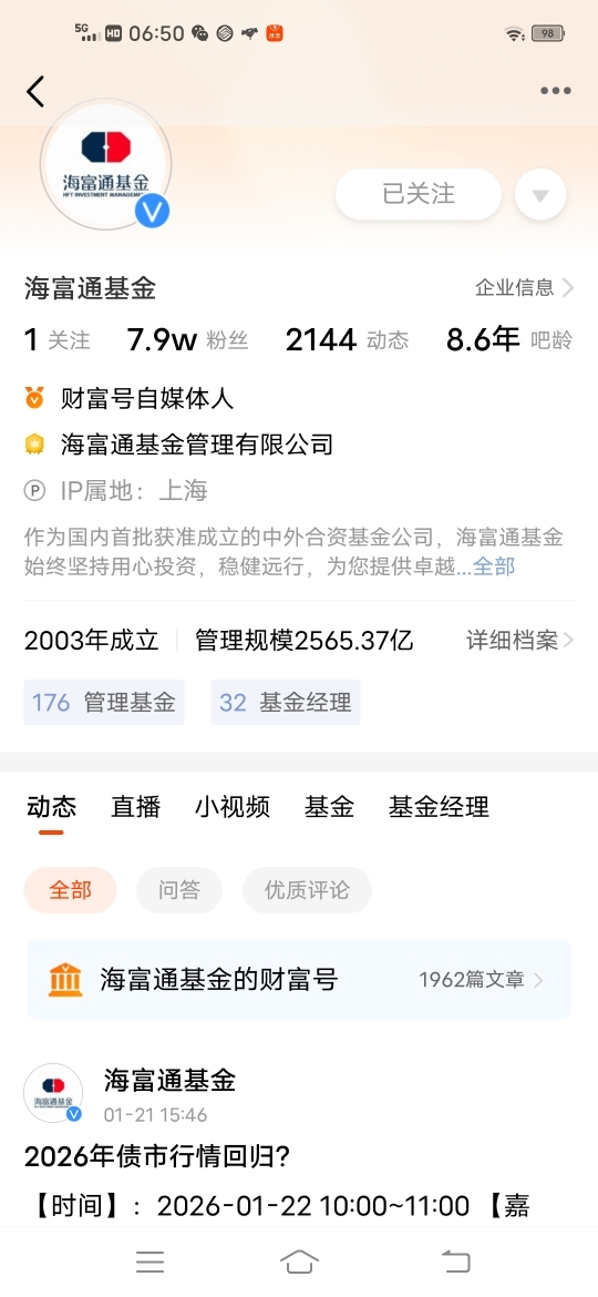 #资产配置新思路# #商业航天或推动太空光伏成下一个蓝海# #高盛上调金价目标至5400# #CPU概念突然大火:巨头产能已被预订一空# 基民小虎是海富通基金的铁粉,一直定投持有$海富通中证港股通科技ETF发起联接C$,收益回报和持有体验都非常好!