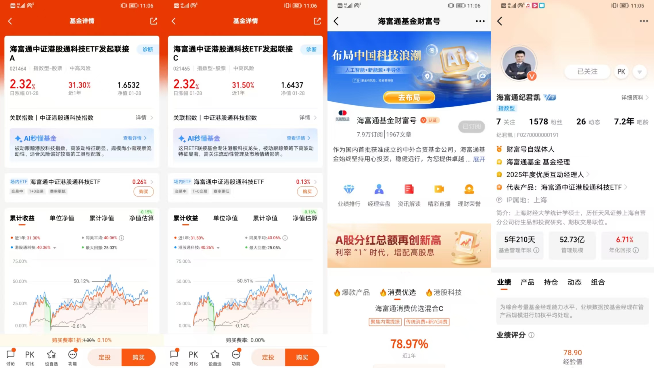 $海富通中证港股通科技ETF发起联接C(OTCFUND|021465)$$海富通中证港股通科技ETF发起联接A(OTCFUND|021464)$