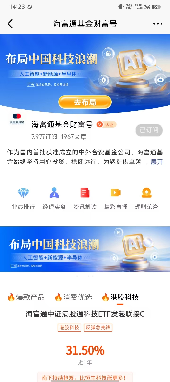 $海富通中证港股通科技ETF发起联接C(OTCFUND|021465)$$海富通中证港股通科技ETF发起联接A(OTCFUND|021464)$