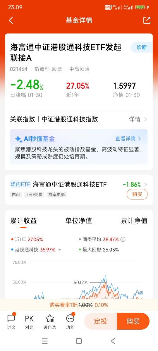当然,选赛道也得选对工具,海富通这只中证港股通科技ETF发起联接基金,能从一众产品里脱颖而出,优势是真的实打实,普通人买着省心又划算。