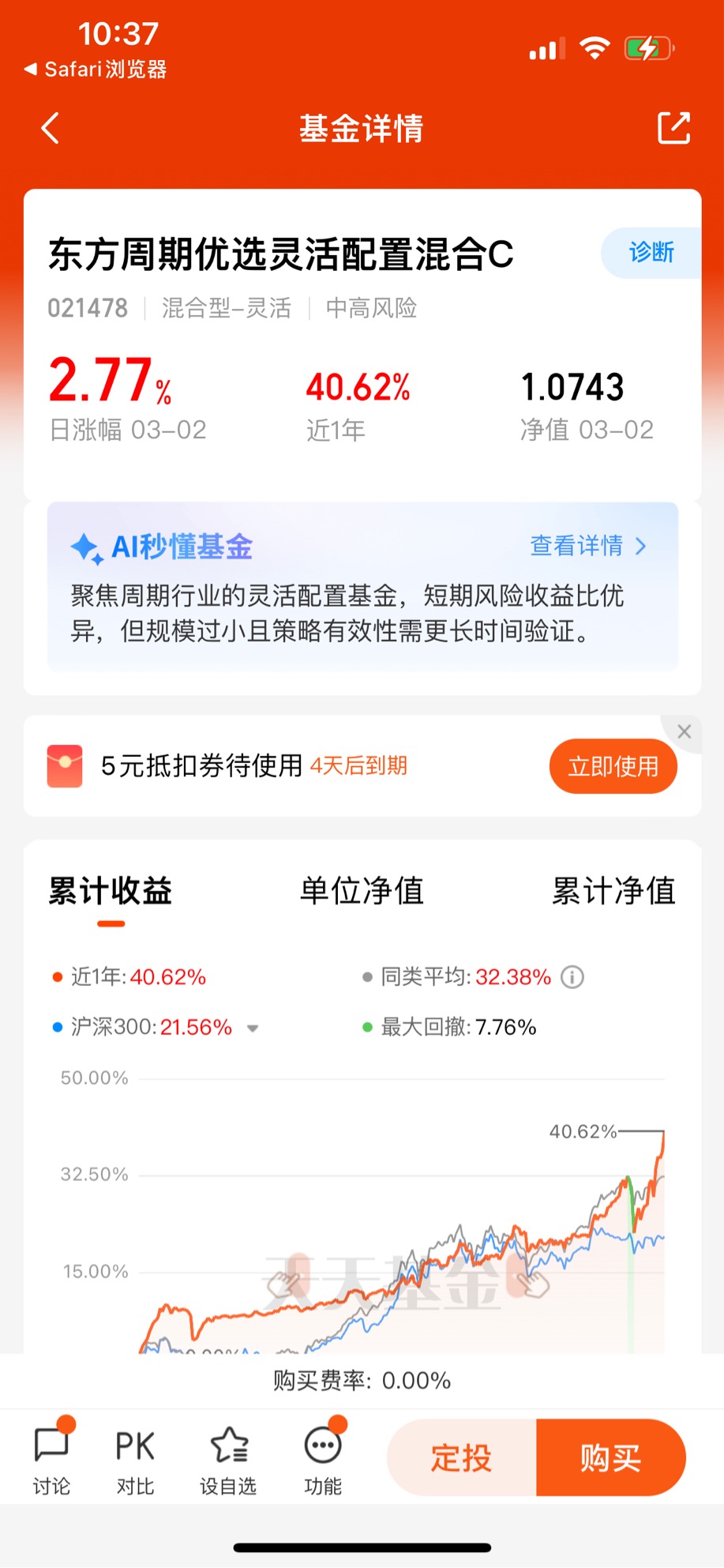 当确定了化工板块的投资价值后,接下来的问题就是:普通投资者该如何布局?直接买化工个股,需要对行业细分赛道、企业基本面、产品价格周期有极强的研究能力,门槛太高;而宽基指数基金,又无法精准捕捉化工板块的核心机会。在反复筛选后,我坚定推荐东方周期优选灵活配置混合C,这只基金,就是普通投资者把握2026年化工周期行情的“最优解”。