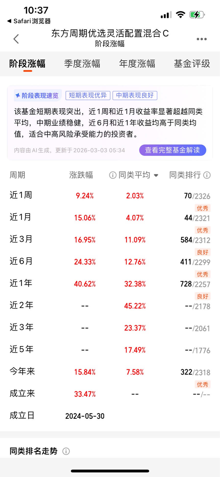 当然,投资没有绝对的完美,这只基金也有需要注意的地方,比如它成立时间仅1年多,尚未经历完整的市场周期考验,周期轮动策略的有效性还需要更长时间的验证。但从目前的市场环境和基金的运作情况来看,它已经展现出了在周期板块投资上的超强实力。对于想要布局2026年化工板块的普通投资者来说,东方周期优选灵活配置混合C,无疑是最值得信赖的选择。