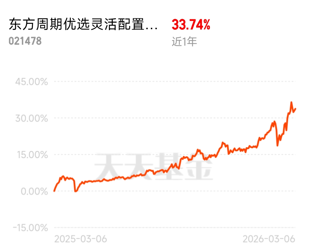 而在布局这波化工行情的过程中,东方周期优选灵活配置混合C,成了我重点关注的对象。关注它,始于对周期行情的共同研判,忠于踏实的持仓体验,久于专业的管理能力。基金经理深耕周期领域多年,对有色、化工的行业脉络、供需变化、轮动节奏有着刻入骨髓的理解,既能读懂有色长周期的辉煌,也能精准捕捉化工结构性的机遇,在有色渐至冲顶阶段及时优化布局,又能提前埋伏化工高景气赛道,每一步都踏在周期轮动的节点上,从不会踏空行情、陷入被动。