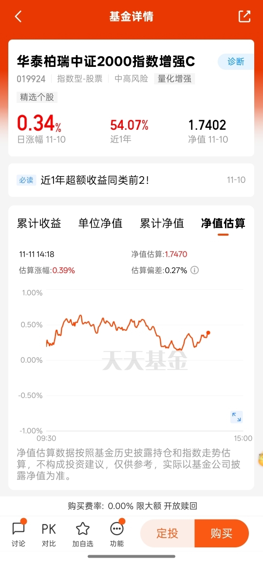 $华泰柏瑞中证2000指数增强C$ #11月基金投资策略#