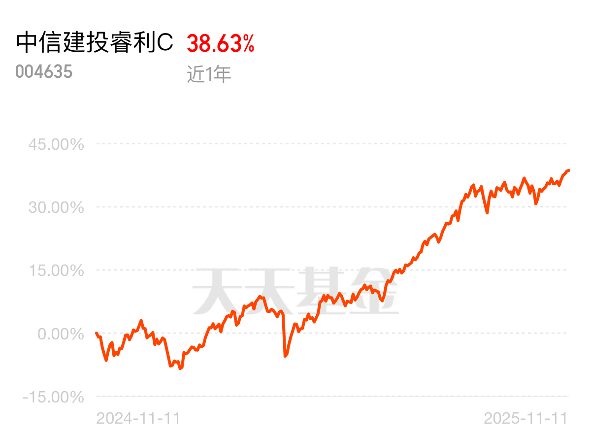 当前配了中航趋势领航C,顺带上了点中信建投睿利C,连涨5天、新高不断,重点踩在机器人、工业4.0和专精特新上,近1年涨了39%,跑赢大多数同类。
