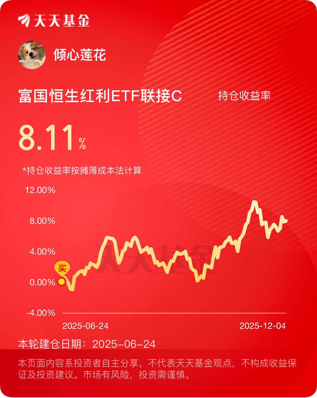 刚瞅了眼,我持有的$富国恒生红利ETF联接C$ 这波赚了8.11%!近一年涨幅27.31%,港股红利行情起飞,大涨中收红利太舒服~#晒收益#