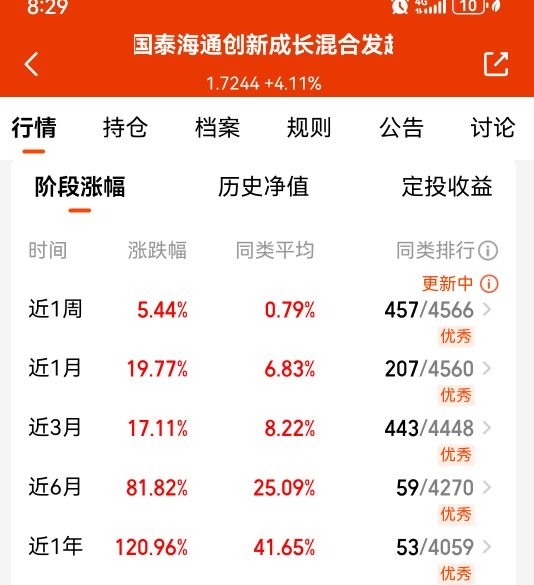 $国泰海通创新成长混合发起C$近一年收益120.96%,陈思靖掌舵科技赛道,真实