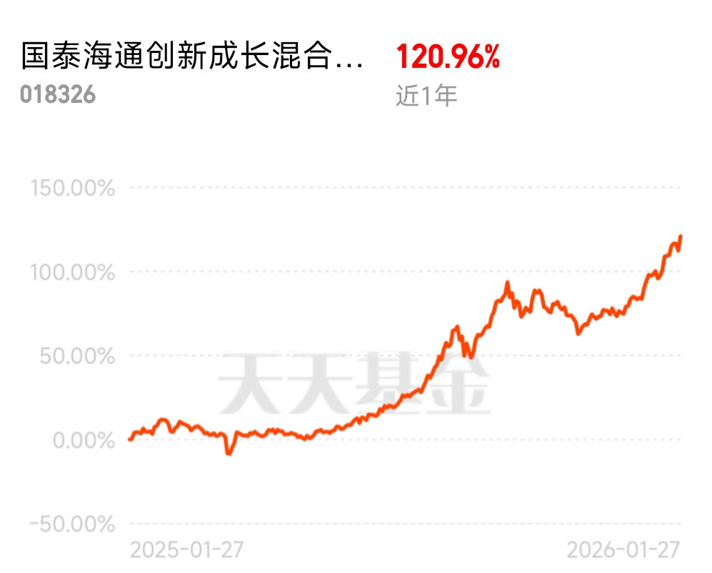 近 1 年 120.96% 的收益谁能不爱,国泰海通创新成长混合发起 C 就是半导体赛道的王者,短期表现出色长期收益有底,行业发展空间巨大,持有超爽。$国泰海通创新成长混合发起C$