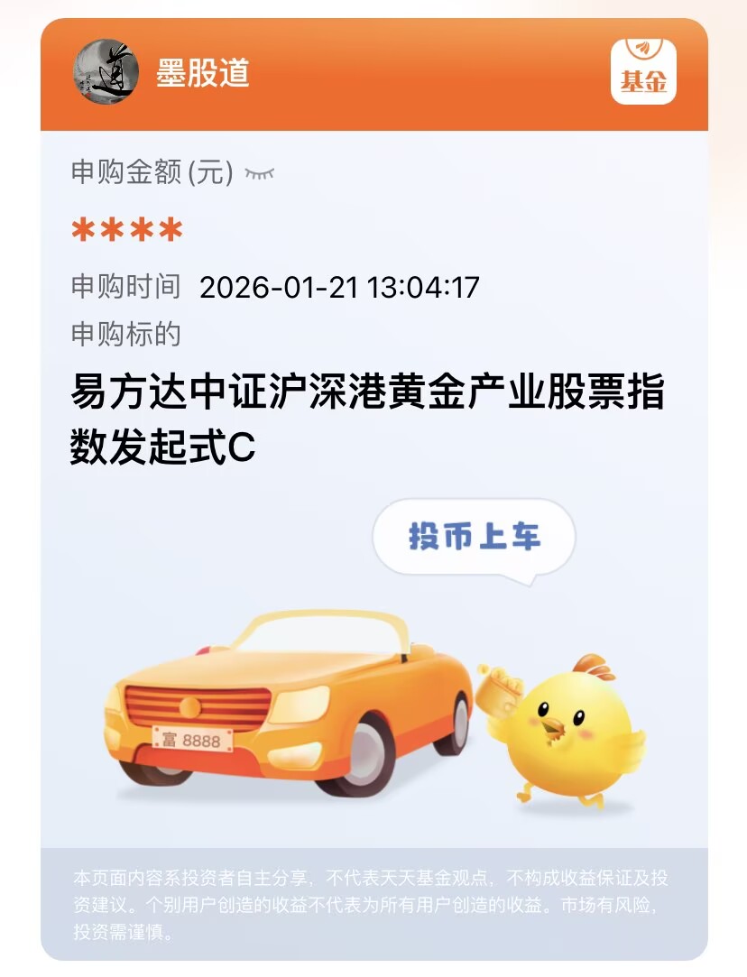 黄金股今日强势大涨,有色板块也跟着联动发力。黄金股的行情和金价趋势基本同步,既不会提前启动,也不会提早收尾。易方达黄金股 C 近期涨幅相当不错,长期配置价值依旧稳固。想稳稳赚收益可以逢低加仓,要是想博取更高收益,布局黄金股就是个好选择,妥妥跟上这波节奏!