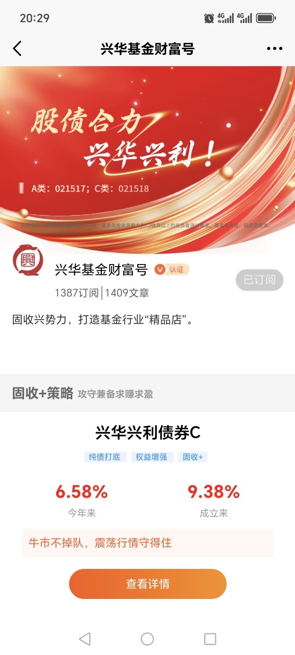 所以我拥抱了兴华兴利债券A(021517),因为兴华基金是很多投资者心目中的投资理财好帮手。@兴华基金