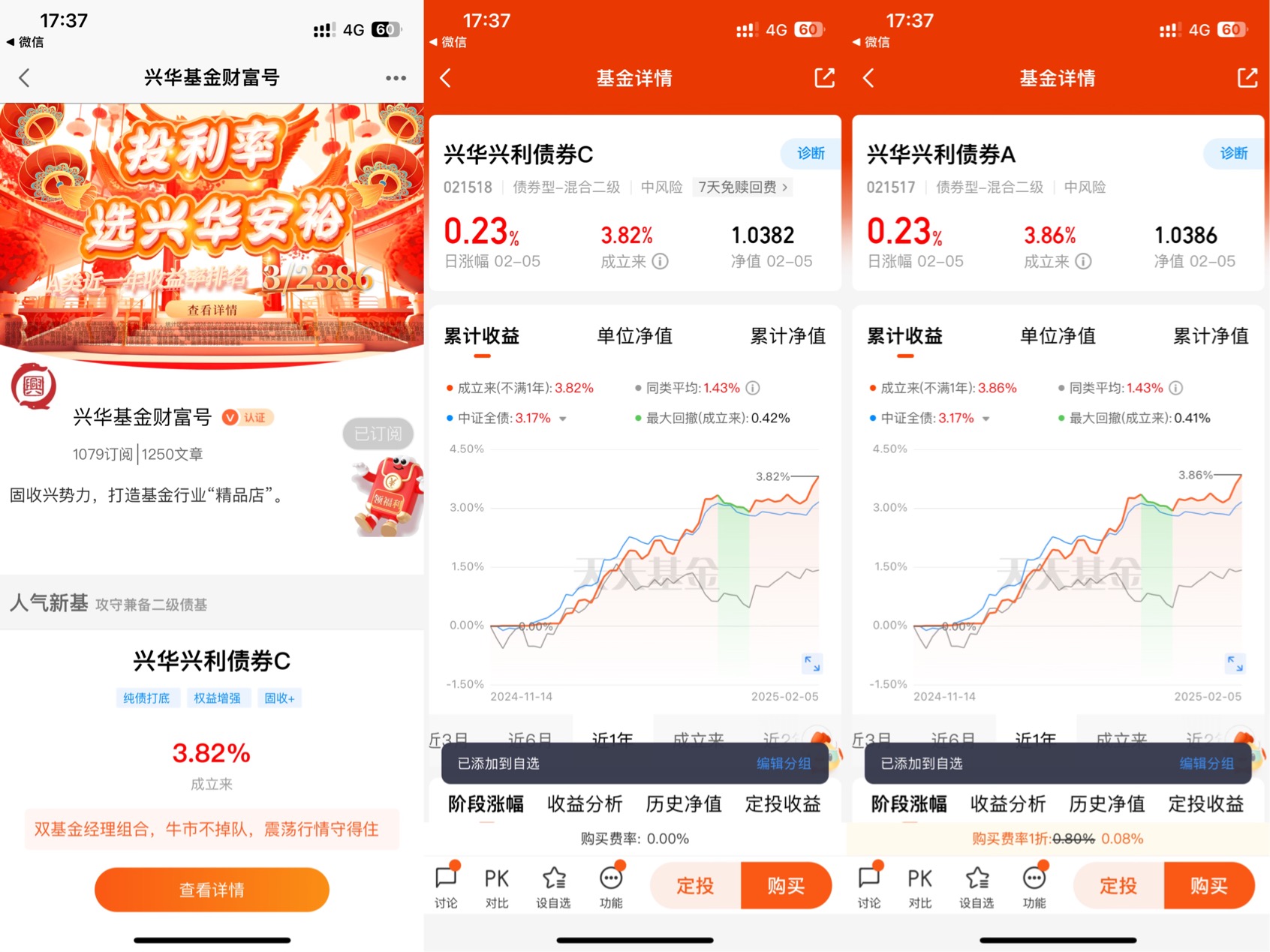 兴华兴利债券 C 作为一只二级债基,具有独特的优势。它为投资者构筑了一道坚实的安全防线,规定债券资产的占比不低于 80%。与此同时,基金又允许适度投资权益类资产,这一设计就像是为收益装上了一个弹性装置,为基金收益增添了更多的可能性。这种巧妙的股债结合模式,完美地兼顾了投资者对稳健与收益的双重需求。在我看来,在春节前夕这个特殊的理财节点,它无疑是最佳选择之一。既能够在一定程度上保障本金的安全,又不会错失资产增长的潜力。
