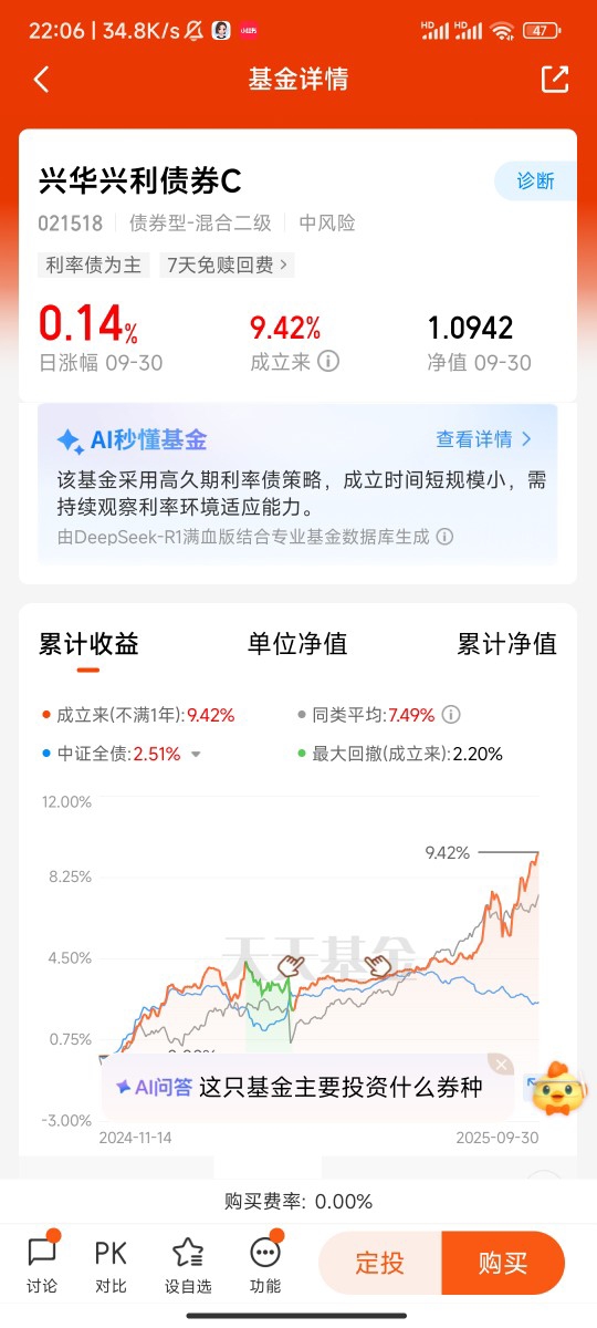 这大半年定投下来,最大的感受就是“省心”。不像有些基金每天涨跌好几块,兴华兴利债券C的净值波动特别小,打开账户看,很少有大起大落的情况,偶尔遇到市场调整,一天也就波动几分钱,完全不会影响心情。而且它是C类份额,没有申购费,持有超过30天还免赎回费,对我这种打算长期持有的定投用户来说,能省不少手续费,相当于多赚了点“零花钱”。