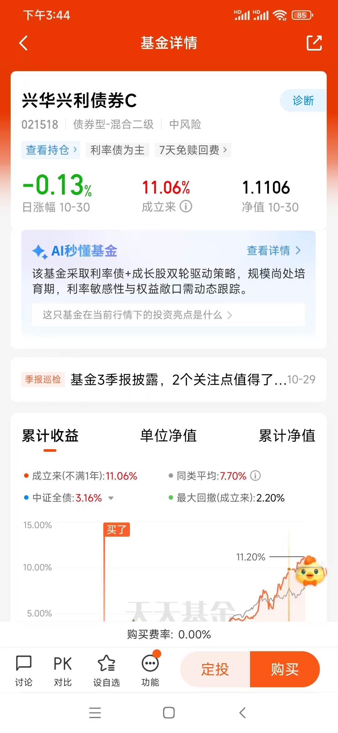 这只基金的费率相对较低,而且持有超过7天免赎回费,对于打算要长期定投的我来说,能有效减少交易成本。兴华基金公司也很有实力,管理经验丰富,长期来看表现稳定,给了我更多信心。