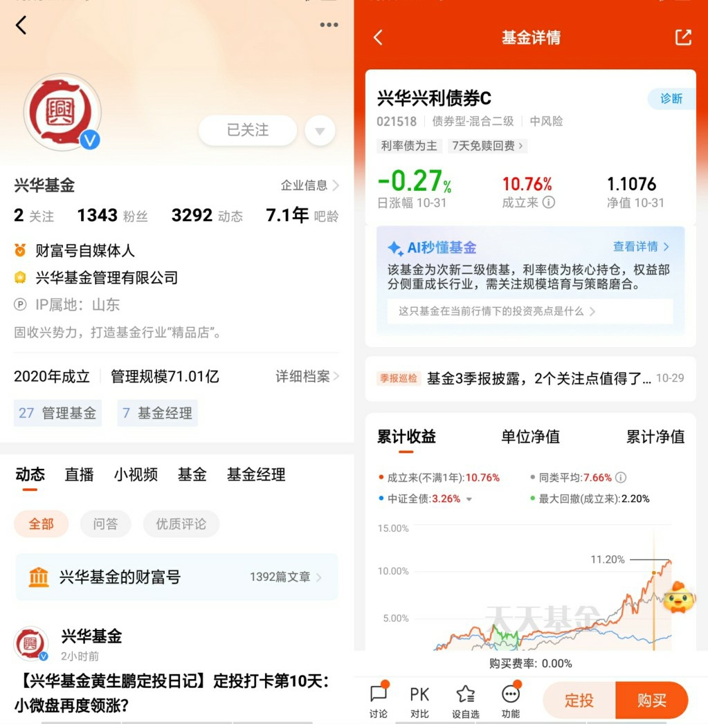 搭配兴华兴利C,是看中它 “固收+” 的底层逻辑:大部分仓位投债券打底(稳稳抗跌),小部分配权益博收益(行情好时跟涨)。最近市场震荡,债市的稳定让账户少了大起大落,遇到权益行情回暖,又能靠股票仓位 “吃口肉”,完美适配周定投的 “长期主义” 。