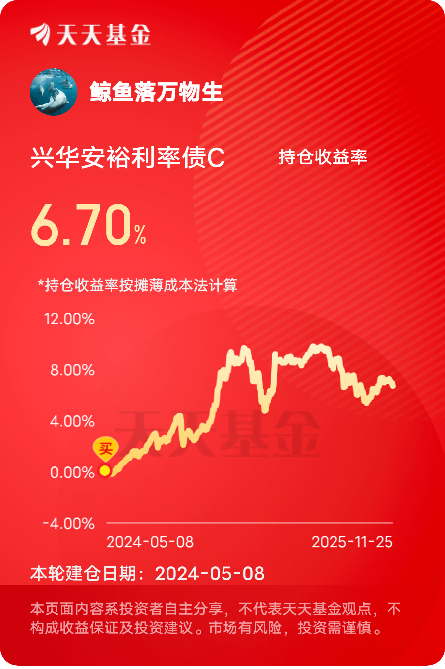 #日定投VS周定投,你更Pick哪一个?# 我选周定投,在存款利率持续下行、市场震荡加剧的背景下,“固收+”基金凭借“债券打底、权益增强”的特性成为稳健型投资者的优选,$兴华兴利债券C$ 作为二级债基类固收+产品,既具备纯债基金的安全性,又兼顾收益弹性,而周定投策略恰好能中和其波动风险,成为当前市场环境下的明智搭配。