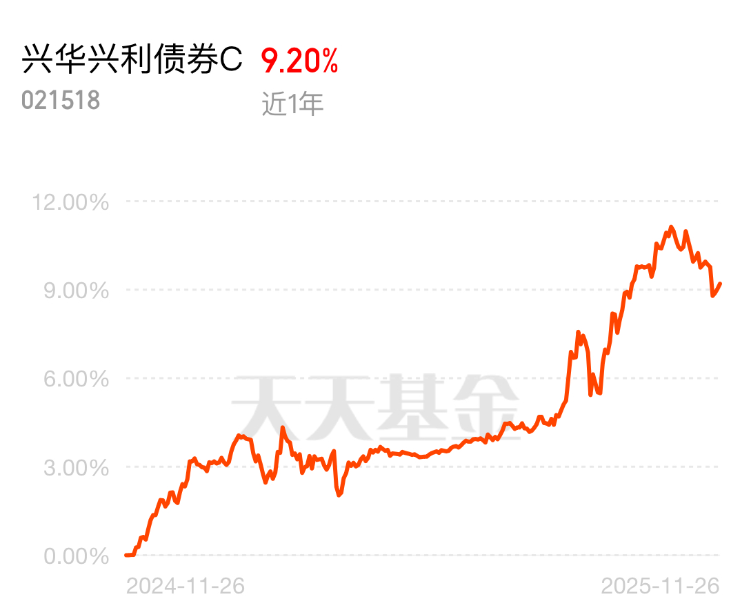 前期市场调整多受外围波动拖累,如今风险已充分释放,全球流动性宽松预期升温叠加A股连续回暖,两市赚钱效应持续回升,阿诗持有的兴华兴利昨天收16个蛋,而且,连续上涨三天,整体的弹性非常不错,这只基金投资策略是多债少股,股票覆盖科技、消费、新能源等板块,行业分布广泛,分散个股风险,又能紧跟市场回暖节奏,完美平衡收益与波动。拉长周期看,近6个月涨幅5.6%,近一年涨幅达9.20%,远超同类基准的4.85%,长期收益不错,属于涨的多跌的少,阿诗今天继续加一笔5000元~