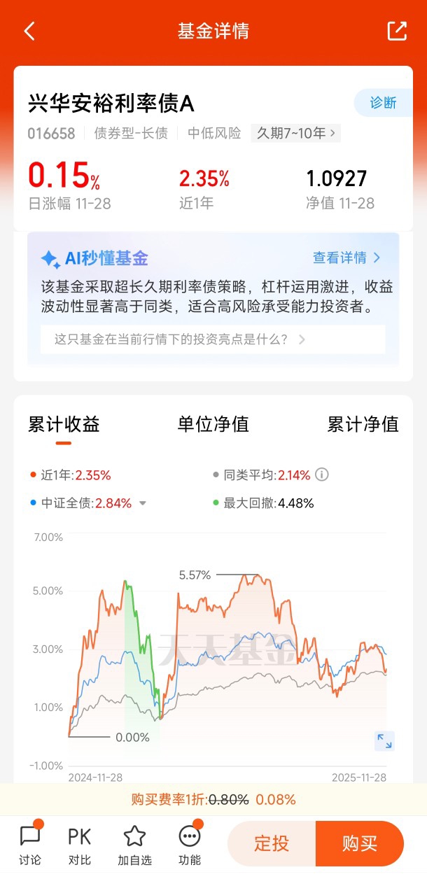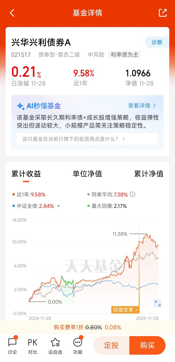 在众多基金中,我为何独关注兴华兴利债券C(代码021518)?不仅因其成立于2024年11月14日,是一支相对“年轻”的基金,更因它代表一种稳健务实的投资哲学。作为普通投资者,我深知自己无能力预测市场顶点与低谷,但可通过选择基本面扎实的产品,辅以定投策略,降低风险、提升胜率。该基金成立以来至2025年10月29日,累计收益率达11.20%,虽不是最耀眼,却体现了“慢即是快”的债券投资特点。接下来,我将从八个维度,结合周定投逻辑,剖析其价值。