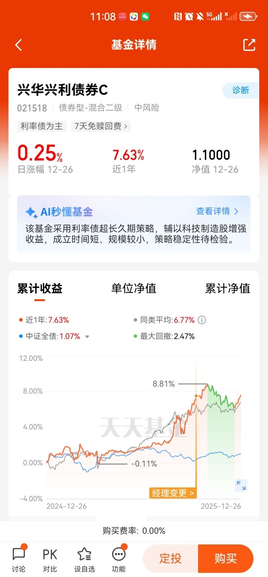 2025年的资本市场在震荡中收官,权益市场波动加剧,债券市场则成为资金避险的重要港湾。在这一背景下,以"稳中求进"为核心的"固收+"策略产品备受关注。$兴华兴利债券C$ 凭借其独特的风险收益特征和灵活的投资策略,逐渐成为投资者资产配置中的"压舱石"。