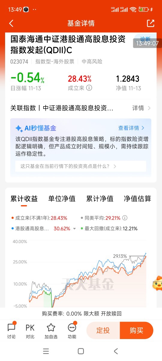 国泰海通中证港股通高股息投资指数发起(QDII)C,同类QDII指数基金中,表现稳健,跟踪误差控制良好。