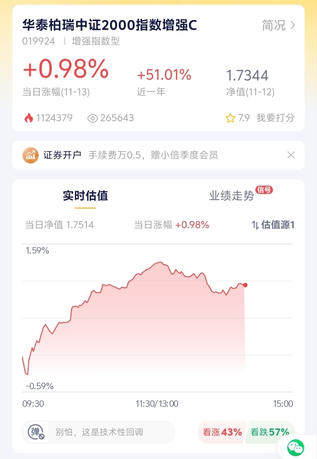 今日A股震荡为主,科技板块持续回调,市场缺乏明确的核心主线,题材轮动频繁,很多投资者都感到迷茫。好在11月是宏观叙事真空期,前期热门板块降温后,小微盘股迎来了黄金窗口期,历史上这个月小微盘的胜率一直不错。这时候选择华泰柏瑞准没错,它的量化增强策略实力超群,近一年超额收益同类第一,能精准把握小微盘的投资机会,在混乱行情里给我们提供一个稳妥的选择,不用纠结于板块轮动。#黄金又牛起来了!这次你上车了吗?# $华泰柏瑞中证2000指数增强C$