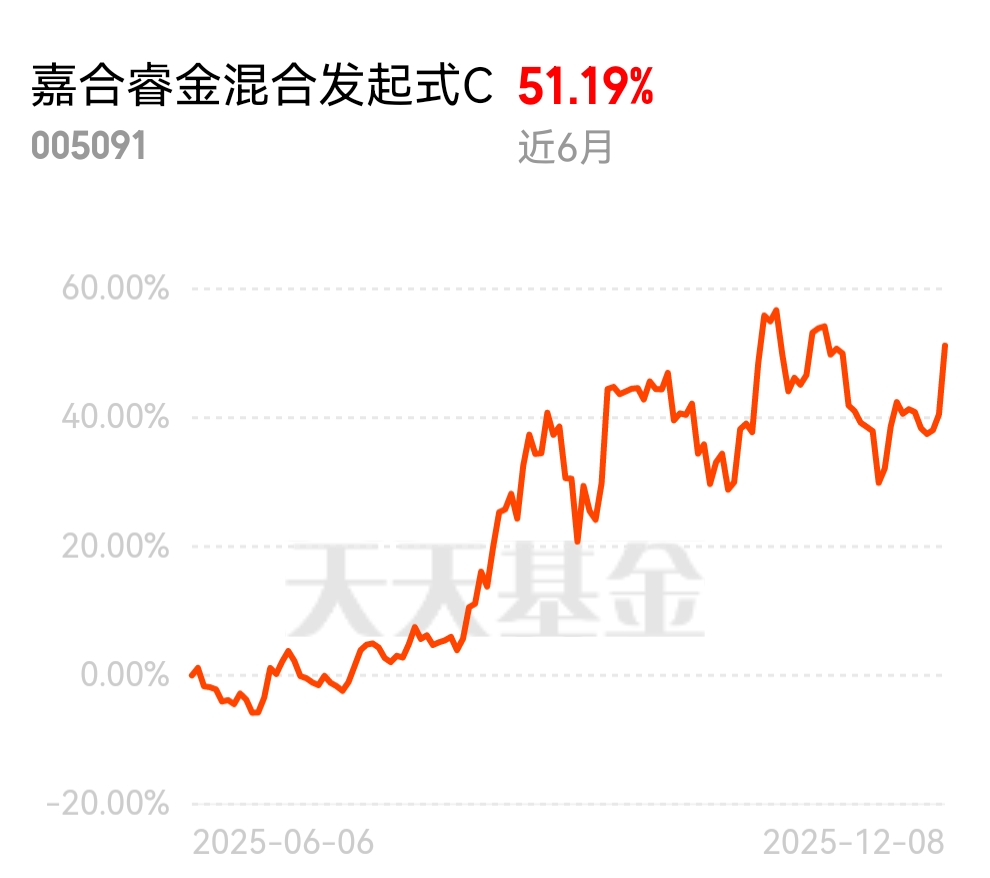 这基金太靠谱了!嘉合睿金混合 C 昨天大涨 7.59%,近六月 51.19% 狂赚,当下位置正合适,不管是新手还是老手,都能放心买,赶紧冲!