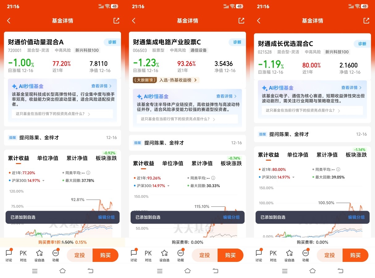 @财通基金 $财通成长优选混合C$ $财通价值动量混合A$ $财通集成电路产业股票C$